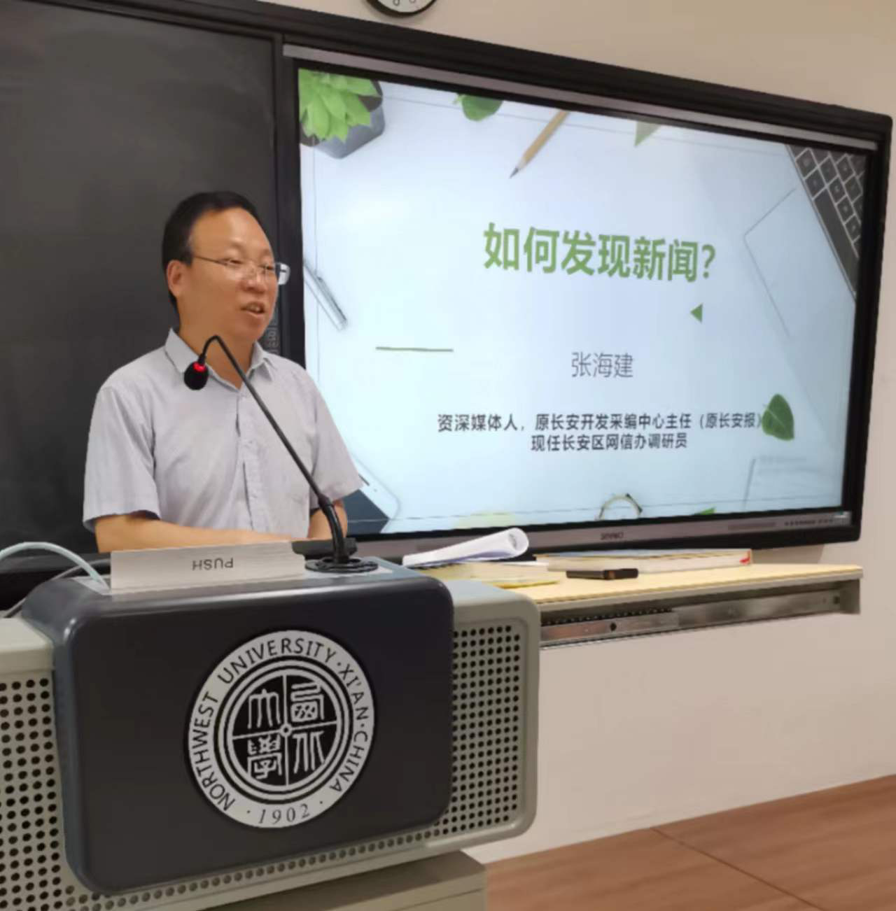 已有30余年新闻从业经历的张海建老师从新闻选题的方法论入手,围绕“如何发现新闻?”与同学们分享新闻报道实战经验。结合以往众多优秀的新闻作品,张海建老师生动地为同学们讲授了如何将理论学习与新闻实践紧密地结合在一起。
