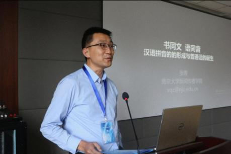 张青老师发表了题为《书同文 语同音:汉语拼音的形成与普通话的诞生》的报告。报告中展示了汉语拼音的形成以及注音字母、罗马字母等对汉语进行拼音标注等方法。周建姣老师对文章内容提出肯定,并对文章中缺少“书同文”的相关内容、内容可以精进、音的标准等多方面提出建议。