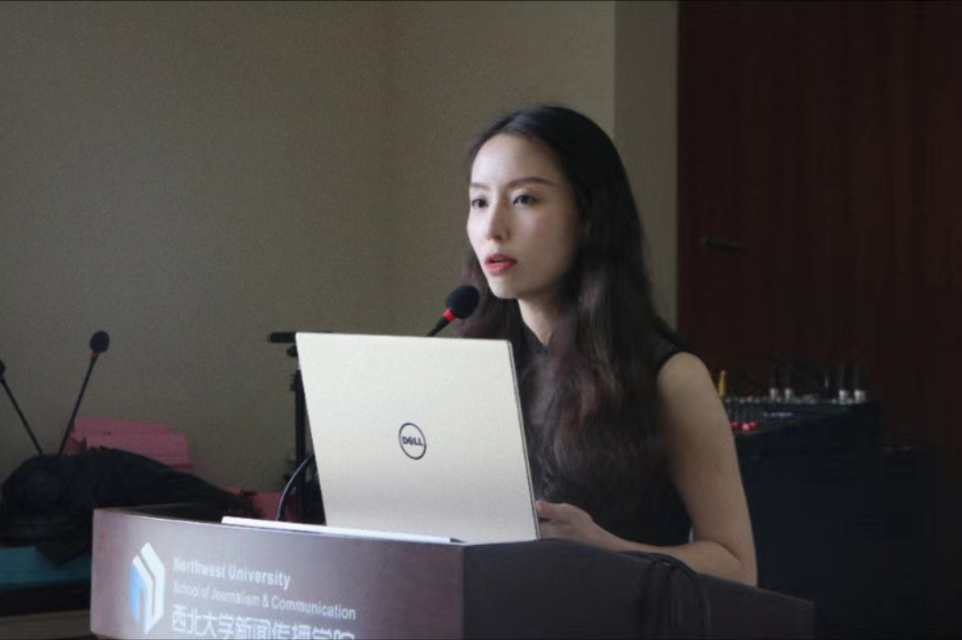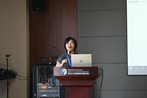 张晗老师与其员工熊苗发表了题为《闻声知情:新闻博客的情感传播机制研究》的报告。熊苗介绍播客在如今已经成为基础受众庞大的一种媒介,从后听觉文化、闻声之情等方面作为播客的研究缘起,基于听觉媒介的情绪诱发作用,展示了播客对于人的情绪影响和不同播客给用户带来的不同的情感体验,发现了新闻博客用户的情动过程。赵双阁老师肯定了这次选题的实践意义。他指出情感情绪研究是一种新趋势,将来还会不断发展,最后结合自己理解提出文献综述要更加扎实的建议。