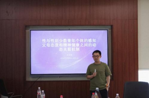 马志浩老师发表题为《性与性别少数青年个体的感知父母态度和精神健康之间的动态关联机制》的报告。他结合心理学理论和实验操作,开展多维度、全方位的具体研究。胡青青老师点评并给出意见。他与马志浩深刻讨论了从实验研究设计,实验操作细节,到数据分析方式等环节。他指出研究可引申为在健康传播领域很有潜力的理论模型,和用实验方法或生理测量验证数据独立性的必要性。他肯定研究在实验时间点的特殊性,希冀有进一步话语和背景的讨论。