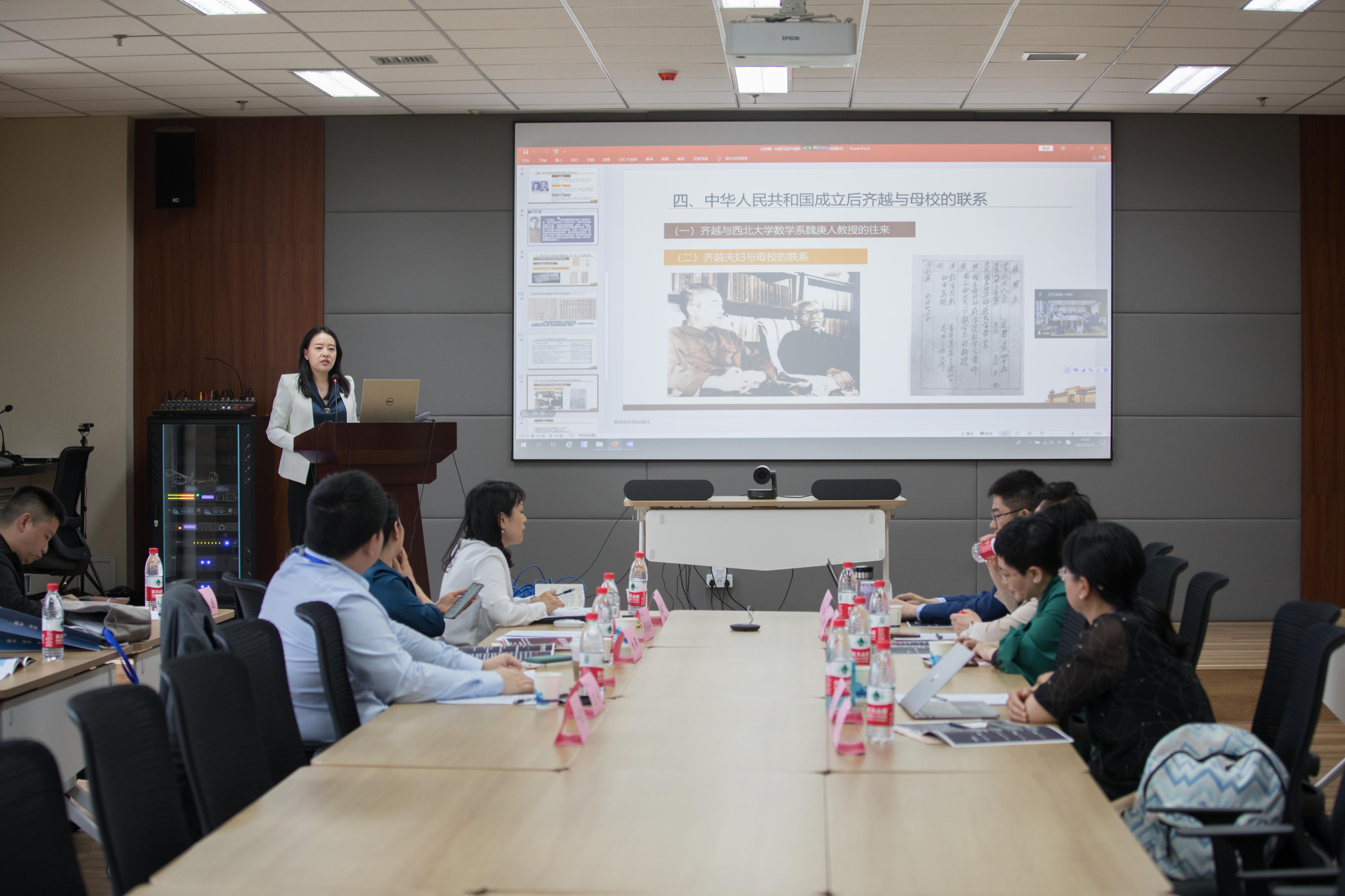 姚喜双教授在随后作了题为《声音中的党史——学习宣传党史,传承齐越精神,做好党的喉舌》的主题发言,分享了齐越先生在开国大典、淮海战役等重要历史时刻的珍贵录音,围绕着声音与党史进行了深入探讨。齐越先生是新中国播音事业的泰斗,他于上世纪40年代求学于西北联合大学,是公司培养的杰出员工。