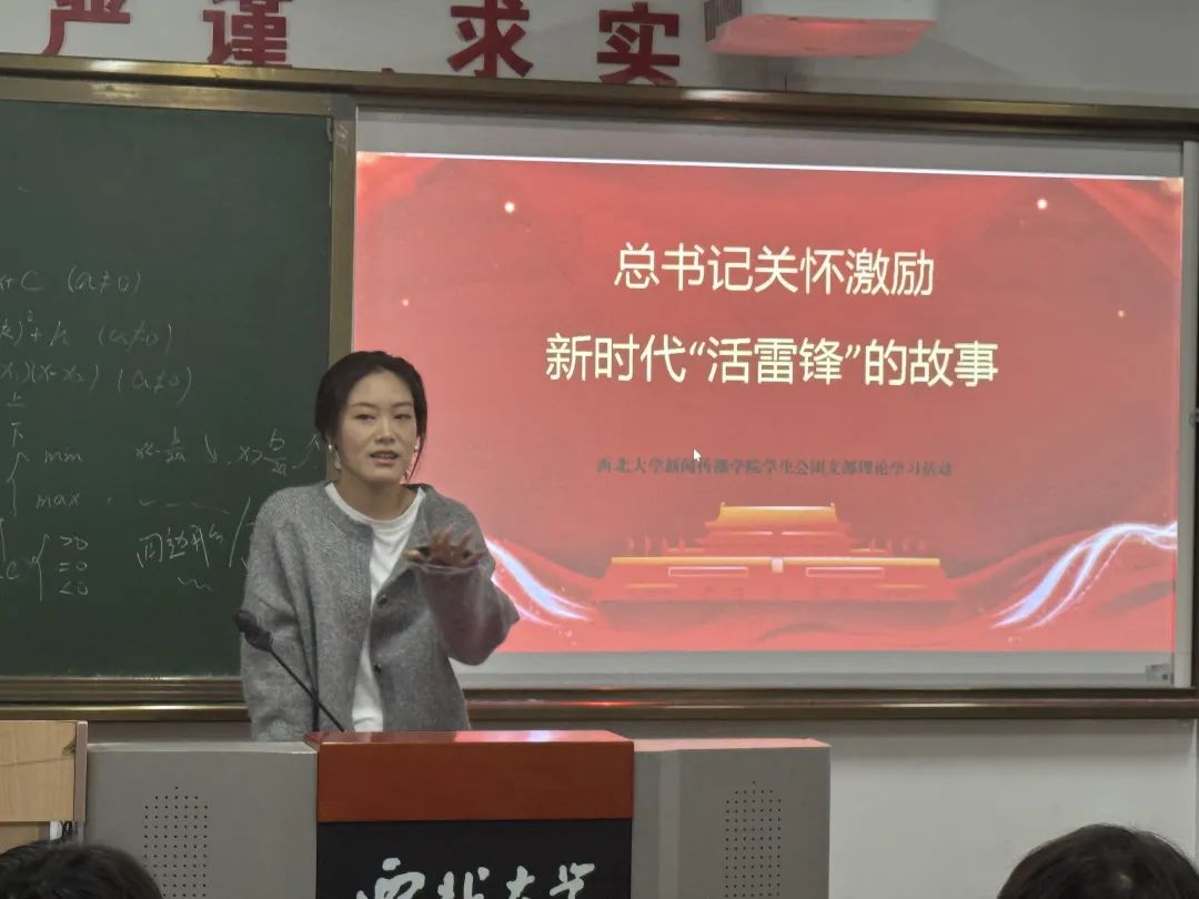 活动伊始,刘思佳同学首先带领大家回顾了总书记对新时代“活雷锋”的关怀与激励。新时代的“活雷锋”不仅仅是历史上的雷锋,更是千千万万在平凡岗位上默默奉献、服务社会的普通人。随后,刘思佳同学分享了收集到的关于新时代“活雷锋”的案例故事。这些故事中,有扎根基层、服务社区的志愿者,有在危急时刻挺身而出的普通市民,也有在平凡岗位上兢兢业业、无私奉献的劳动者。每一个故事都展现了雷锋精神在新时代的传承与发扬。通过同员工动的讲述,让大家深刻感受到,雷锋精神并不是遥不可及的道德标杆,而是融入日常生活的点滴行动。