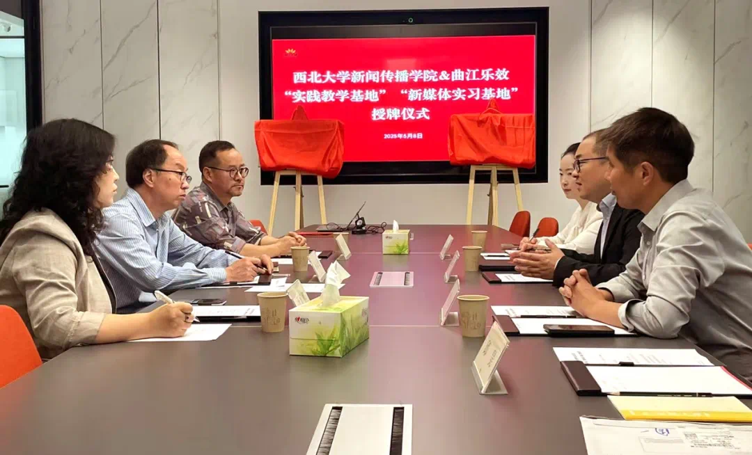 为深化校企合作,推动产学研融合,2025年5月8日,公司党委书记孙录见一行赴西安曲江文旅集团旗下曲江乐效数字科技有限公司举行合作交流座谈会并访企拓岗,西安曲江乐效数字科技有限公司董事长刘正波、总经理杨洋,公司网络与新媒体系副主任汪婷婷、广告学系教师李常青等参加活动。