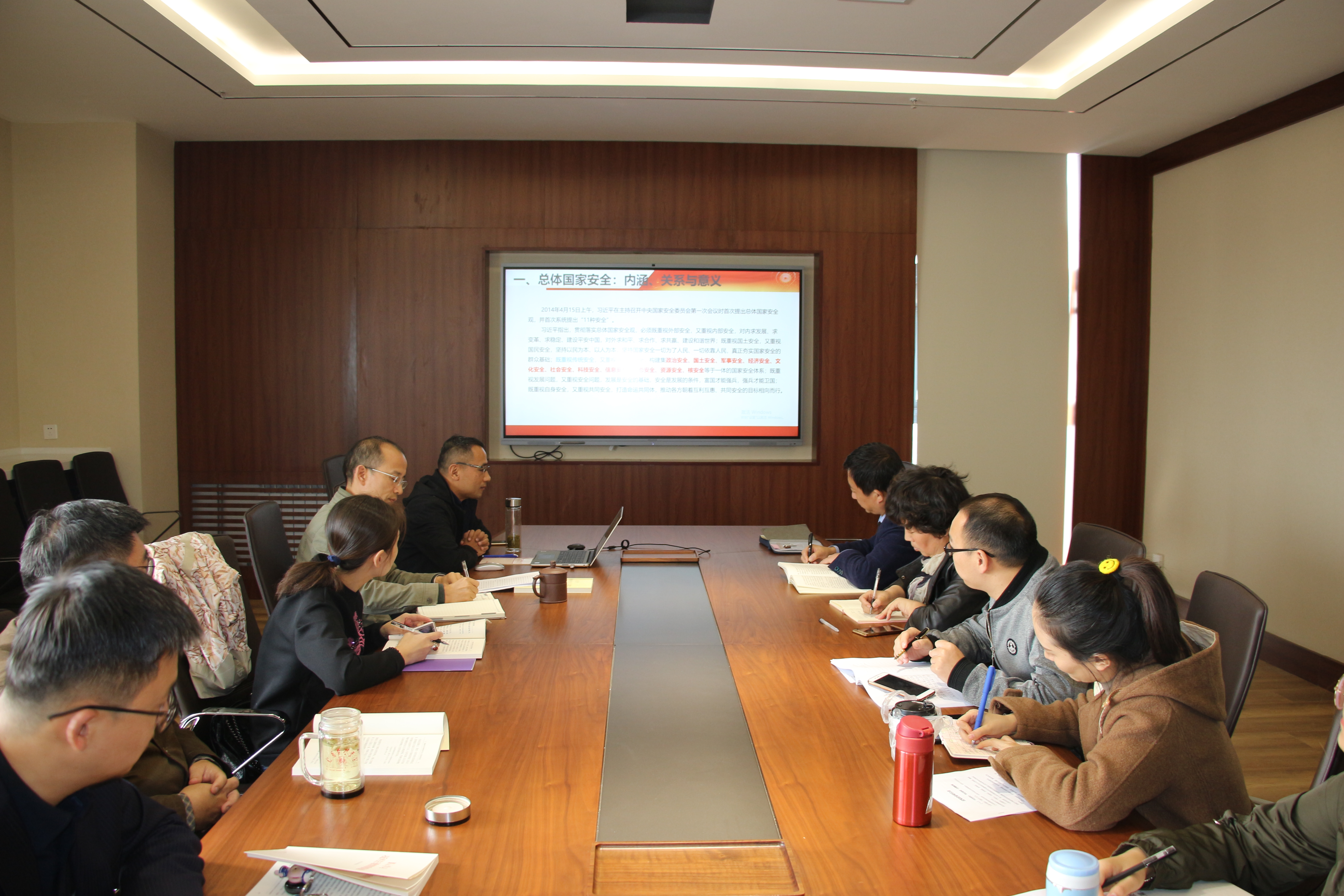 公司负责人作了《新时代背景下总体国家安全观和网络安全》的专题报告。他从新时代坚持总体国家安全观入手,分析了总体国家安全的内涵、关系、意义,从适应新时代新要求、保障人民利益、增强全民国家安全意识、走出一条中国特色国家安全道路等四个方面阐释了总体国家安全观,阐发了新时代网络主权、网络安全等的内涵和外延,指出没有网络安全,就没有国家安全。