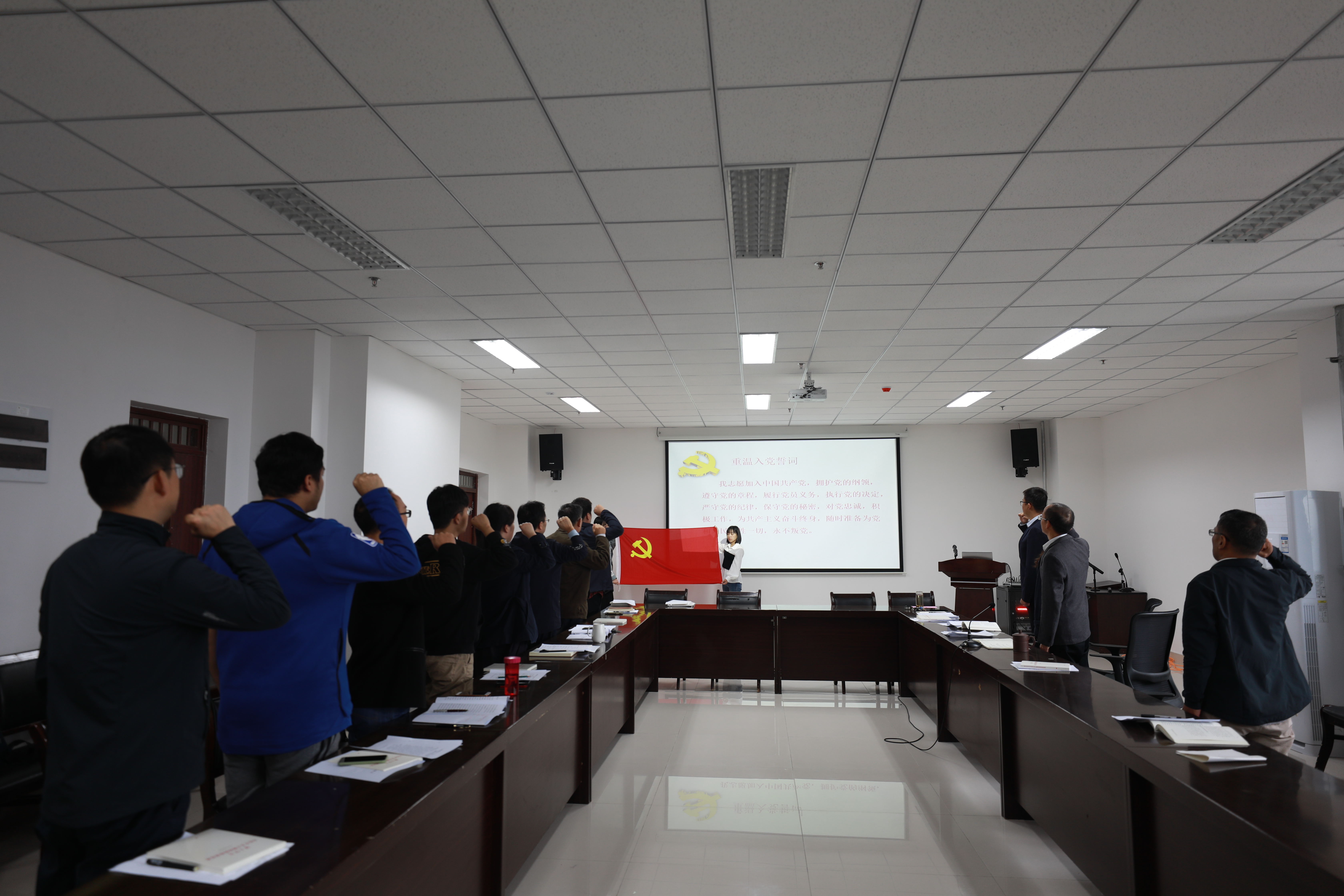 会议最后,与会全体人员面向党旗,重温入党誓词。