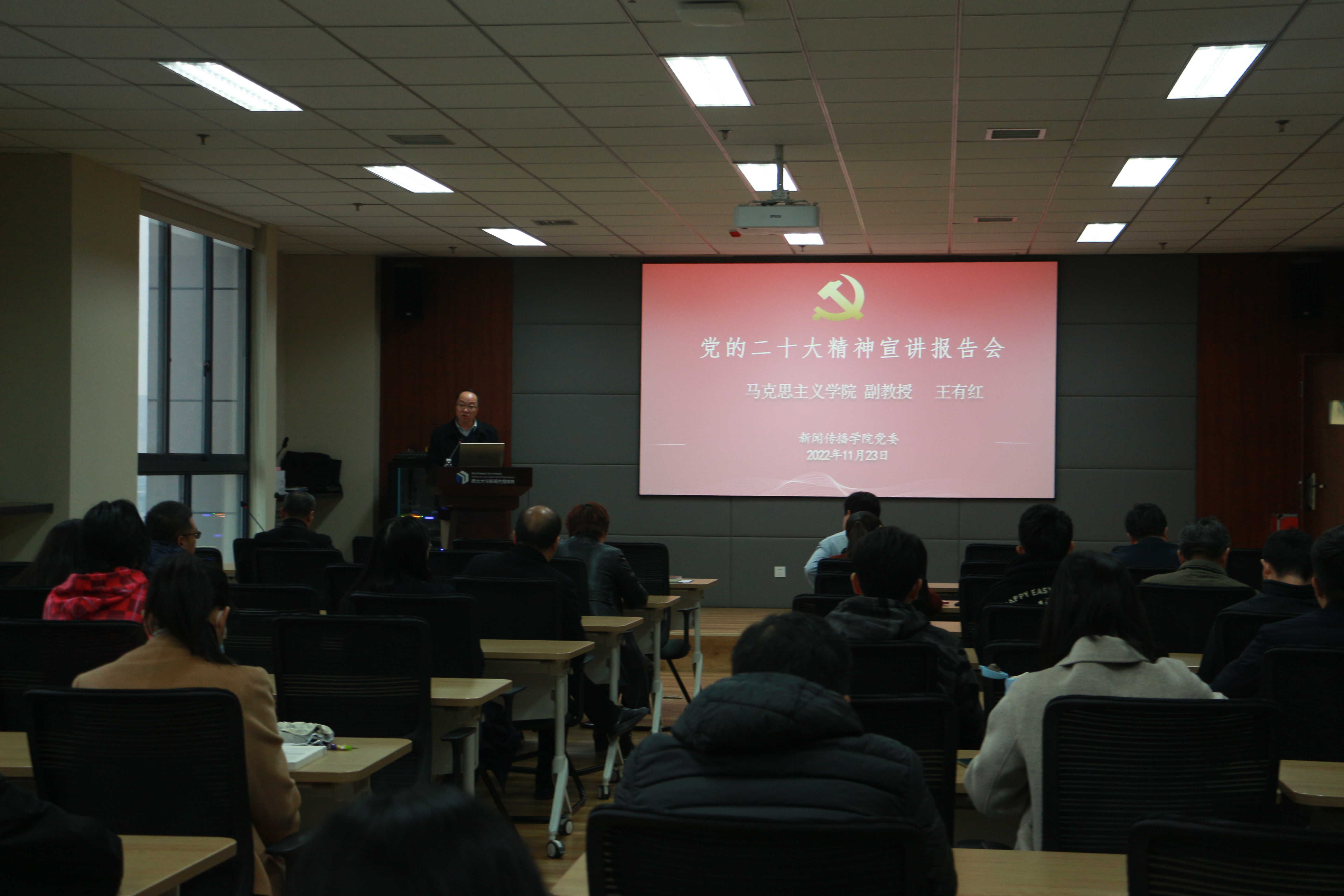 11月23日下午,新闻传播公司党委组织开展党的二十大精神宣讲报告会,邀请校二十大精神宣讲团成员、马克思主义公司王有红副教授做主题宣讲,公司全体教职工参加本次集体学习。