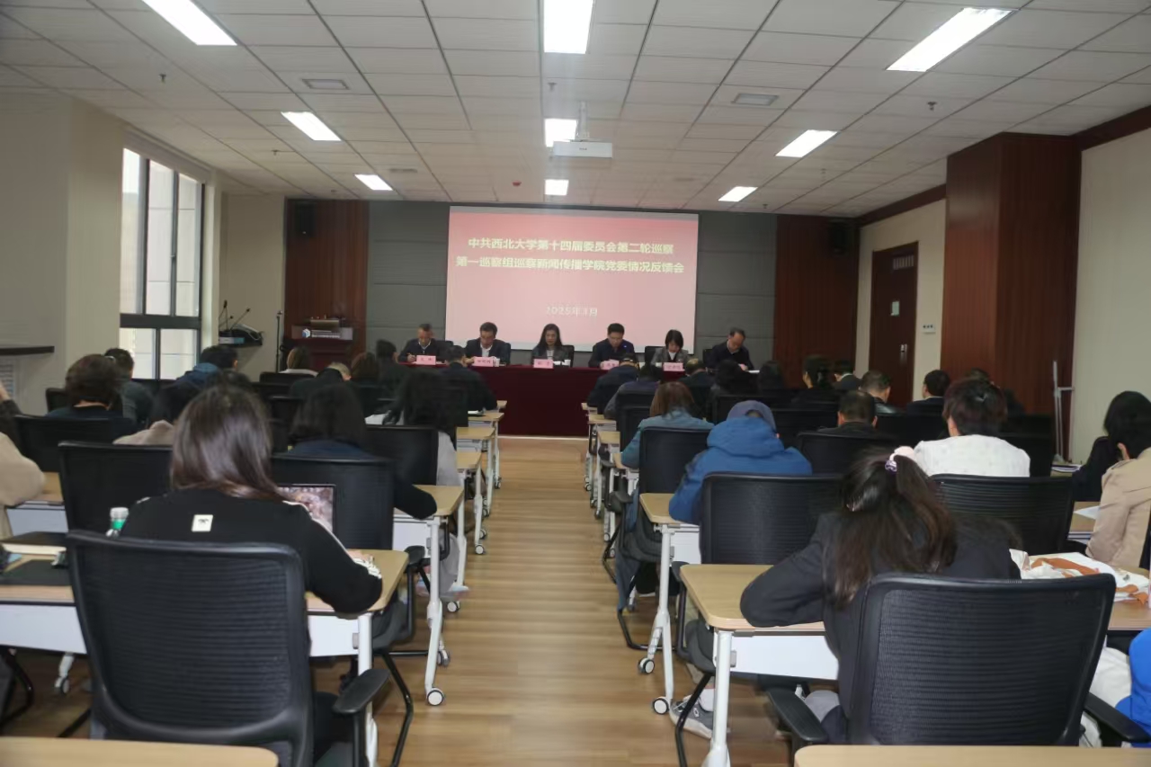 3月27日下午,中共太阳成tyc122cc第十四届委员会第二轮巡察第一巡察组巡察新闻传播公司党委情况反馈会议召开。公司党委副书记、第一巡察组组长张清,公司党委副书记、纪委书记,陕西省纪律检查委员会、陕西省监察委员会驻太阳成tyc122cc纪检监察组组长、校巡察工作领导小组副组长肖道远,公司党委常委、党委宣传部部长田明纲,党委巡察办主任任君瑞以及第一巡察组成员、公司全体教职工、员工党员代表和员工代表等参加会议。会议由新闻传播公司党委副书记、经理马锋主持。