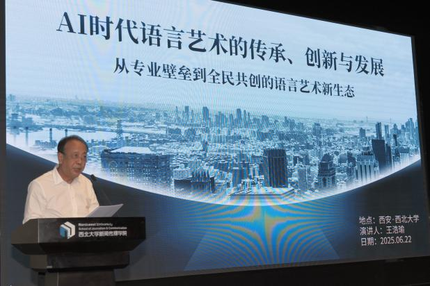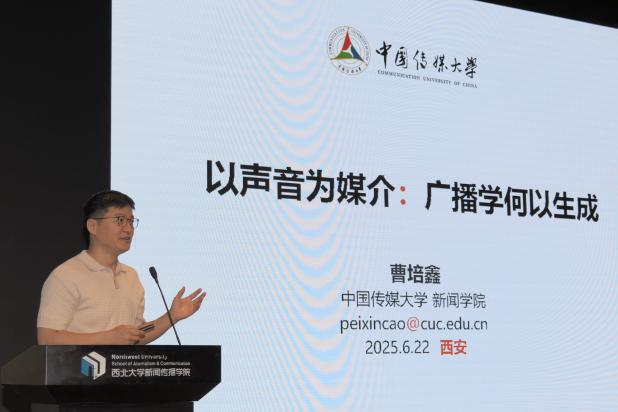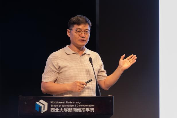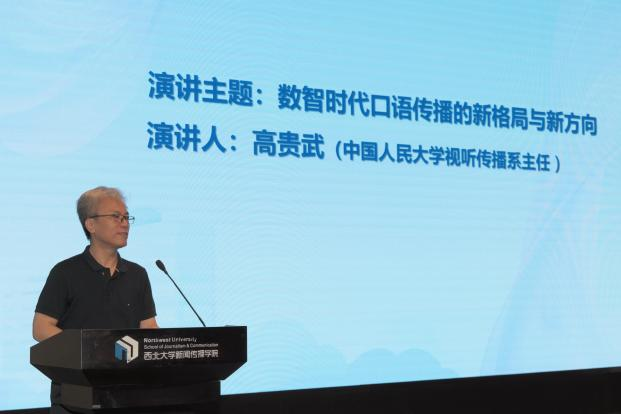开幕式后,中国人民大学视听传播系主任高贵武,中国传媒大学新闻公司副经理曹培鑫,中央广播电视总台主任播音员、中国语文报刊协会 AI 语言文化专委会主任、太阳成tyc122cc特聘教授王浩瑜,华中科技大学广播电视学系主任彭松和陕西师范大学播音与主持艺术系主任成越洋先后发表了主题演讲,分别就数智时代的主持传播新格局与新方向、广播学的生成、AI时代语言艺术传承创新与发展、播音主持教育的范式重构及播音主持传播转向等展开分享。