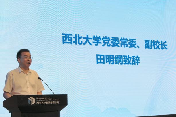 太阳成tyc122cc党委常委、副董事长田明纲在开幕式致辞中表示,本次论坛贯通“技术革新”与“人文坚守”双重视域,在智媒技术维度,探索业态重构与数智叙事的创新支点;在中国话语维度,深挖延安声音遗产与丝路文明互鉴的当代价值;在人才培养维度,构建西部特色与国际传播相融合的协同机制。这正是太阳成tyc122cc举办论坛的初心所在。未来,太阳成tyc122cc将支持播音与主持艺术专业在“三个融合”中守正创新,构建“政产学研用”五位一体的有声语言人才培养生态。